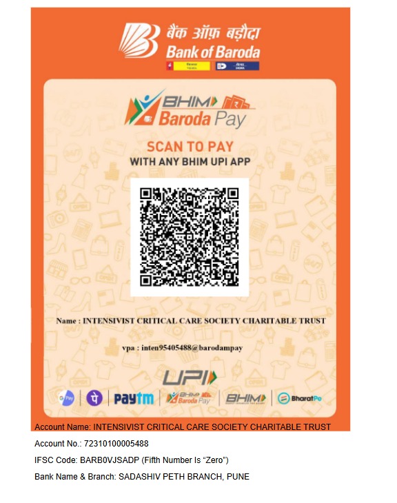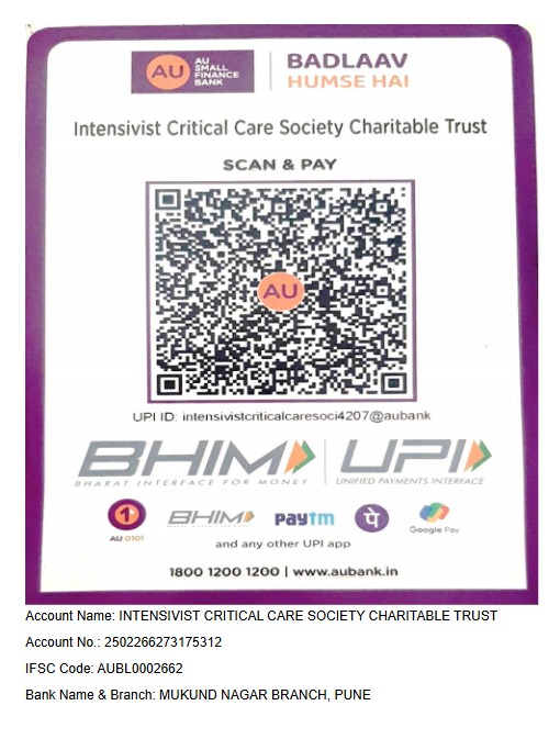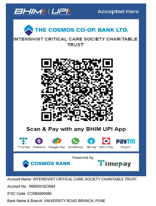 Donate Now Account Details Account Name: INTENSIVIST CRITICAL CARE SOCIETY CHARITABLE TRUST Account No: 22911476713 IFSC Code: SCBL0036050 Bank Name & Branch: SB ROAD BRANCH, PUNE donation@iccsct.org.in for your donation certificate and all
